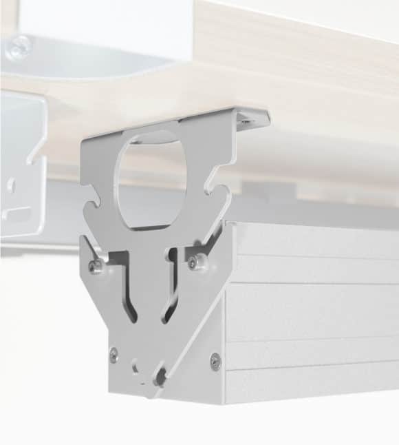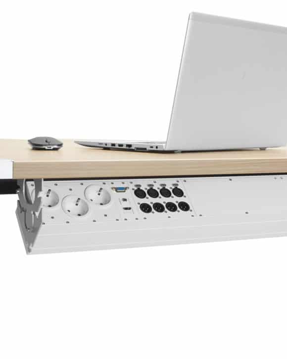 Sämtliche Anschlussstrippen und sogar Steckdosenleisten und Netzteile können großzügig untergebracht werden. Mithilfe der durchdachten Universalwinkel ist der Vollmetall-Kabelkanal in verschiedenen Positionen einstellbar und lässt sich auch als Anschlusspult für die Auf- und Untertischmontage verwenden.