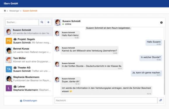 Alle Schüler*innen und Lehrer*innen können via IServ Messenger mit anderen Benutzern oder innerhalb von Kleingruppen kommunizieren. Der geschützte Rahmen des Schulservers stellt dabei sicher, dass alle datenschutzrechtlichen Vorgaben eingehalten werden. (Bild: IServ)