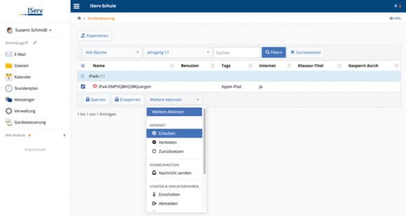 In IServ können die Lehrkräfte Geräte steuern. Dabei kann das WLAN für einzelne Nutzer oder auch ganze Schulklassen aktiviert und deaktiviert werden. So lassen sich im Unterricht Internet-Recherche-Phasen verbindlich definieren. (Bild: IServ)