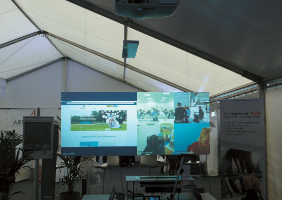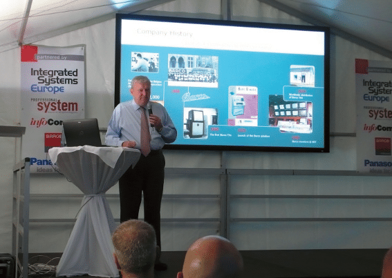 Und wie bereits im vergangenen Jahr gab es auch 2014 eine Weltpremiere: Zeitgleich mit einem Event in New York stellte Barco seine neuen Projektoren der „Present-C“-Reihe in Uhingen weltweit erstmals einem Fachpublikum vor. Die Present-C Reihe umfasst DLP-Projektoren von 3.000 bis 8.000 Lumen und wählbaren Auflösungen wie Full HD, WUXGA, WQXGA (2.560 × 1.600 Pixel) oder sogar Panorama im 21:9-Bildformat. Die Projektoren verfügen u. a. über ein hochwertiges Gehäuse, ein hohes Kontrastverhältnis und Glas-Objektive.