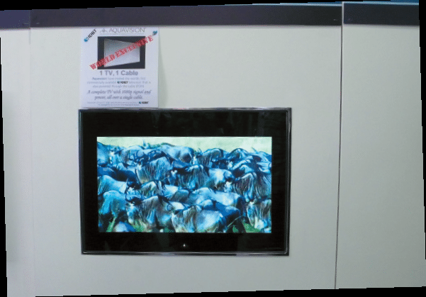 HD-BaseT-Lösungen stellten Wyre-Storm (AV-Signalverteilung) und Aquavision (TV) vor. Letztere präsentieren eine „wasserfeste“ TV-Lösung in HDBASE-T-Technologie, die auch in Wellness-Bereichen ihre Wirkung tut.  Sie wird via Cat.5-Kabel mit dem HDTV-Signal wie auch mit Strom versorgt.