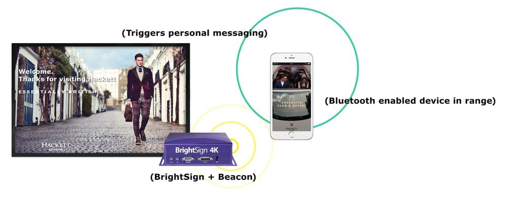 BrightSign stellt mit BrightBeacon eine Technologie vor, die eine Interaktion zwischen Digital Signage und Betrachter über Bluetooth ermöglicht.