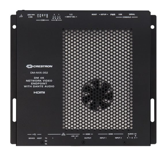 DM-NVX-352 entspricht ebenfalls dem DM-NVX-350 mit dem zusätzlichen, schon eingangs erwähnten Feature zwei Dante- oder AES67 Audio-Kanäle lokal analog oder über HDMI ausgeben, sowie auch umgekehrt ins Dante Netzwerk einspeisen zu können.