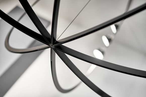 Mit gebogenen Schienen können Kugeln, Ovale oder Neuinterpretationen klassischer Kronleuchter entstehen (Beispiel: Freesyler sphere von Buschfeld Design GmbH). (Bild: Norbert Miguletz, buschfeld Design GmbH)