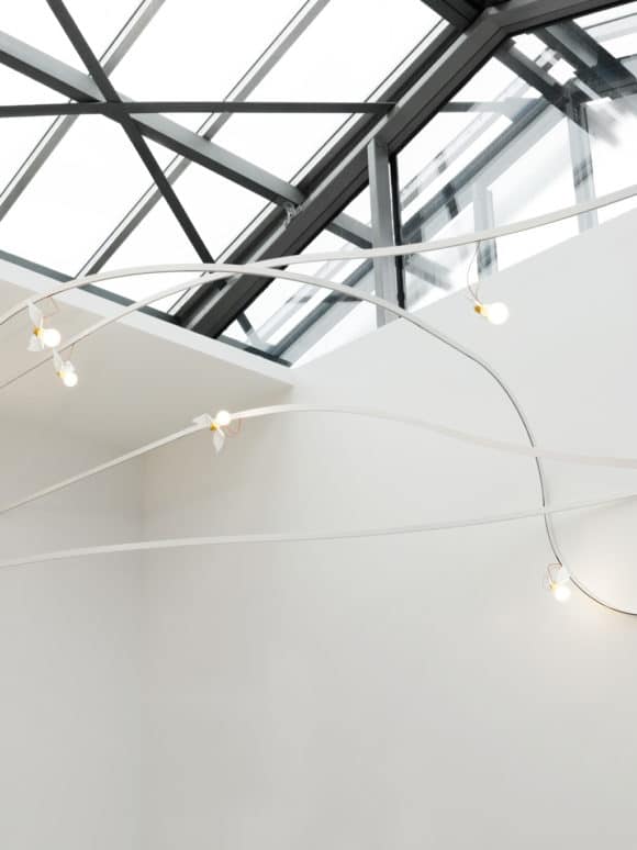 2020 hat Buschfeld sein digitales Sense System um eine Kooperation mit dem international renommierten Hersteller Ingo Maurer erweitert: Zum ersten Mal sind Lucellino Leuchten, die mit ihren handgefertigten weißen Federflügeln an einen Vogel erinnern, mit den schmalen Stromschienen des smarten Sense System kombiniert. (Bild: buschfeld Design GmbH)
