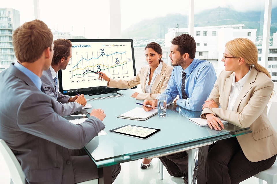Sharp PN-40TC1 – Einsatz in kleinem Meetingraum (Bild: Wavebreakmedia)
