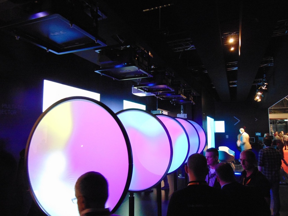 Die 3 LCD Technik bringt bekannterweise exzellente Farben und Kontrast. NEC zeigt hierzu die PA Serie PA3050 mit 8000 Lumen und den PA653UL mit 6.500 Lumen, die PX Serie ist für Anwendungen dank der Laser Licht Quelle für Event oder Digital Signage  geeignet. Interessant ist auch der Vergleich verschiedener LED Pixelgrößen, da hierzu allein der Betrachtungsabstand für die Auflösung im Auge ausschlaggebend ist.