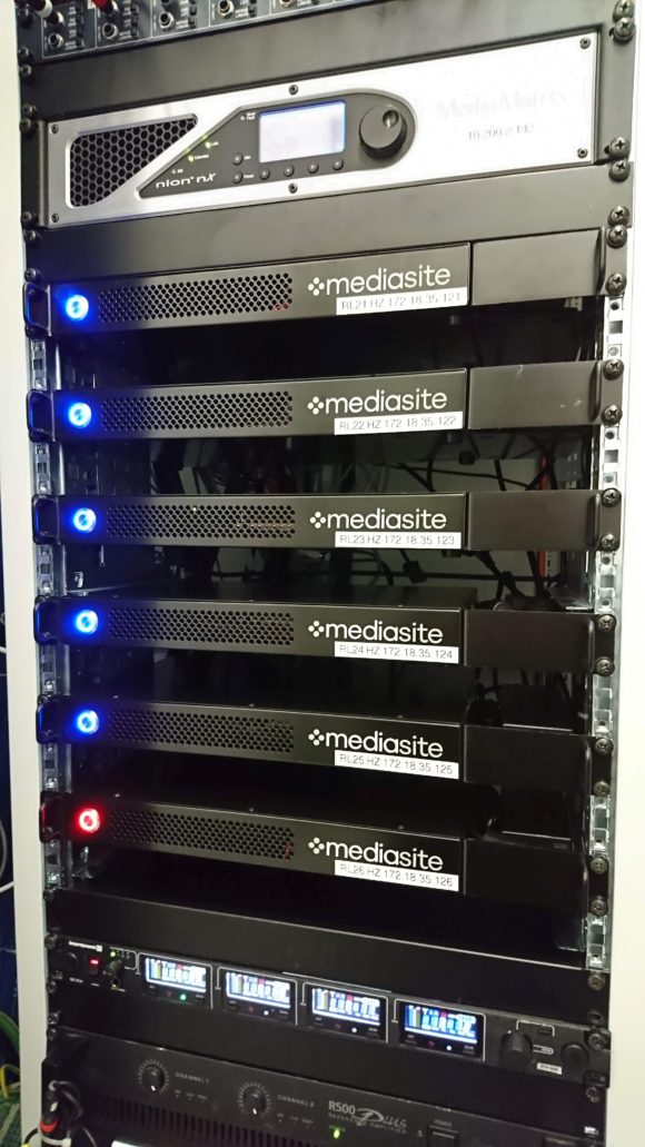 Mediasite Recorder-Einheiten in einem Technikraum der Goethe-Universität Frankfurt (Bild: Ullrich Grimm-Allio)