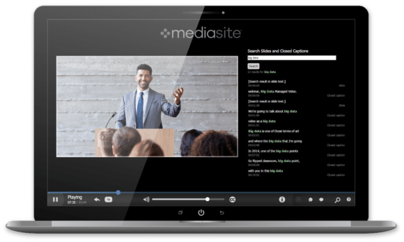 Ein Untertitel-Editor und die Integration mit der Sprache-zu-Text-Technologie schaffen mehr auffindbare und zugängliche Videos und tiefere Einblicke in Videodaten. Mediasite bietet eine vollständige Inhaltssuche für alles Gesagte und Gezeigte in vielen Sprachen, indiziert es automatisch und entfernt Stimmpausen für sauberere Transkriptionen.