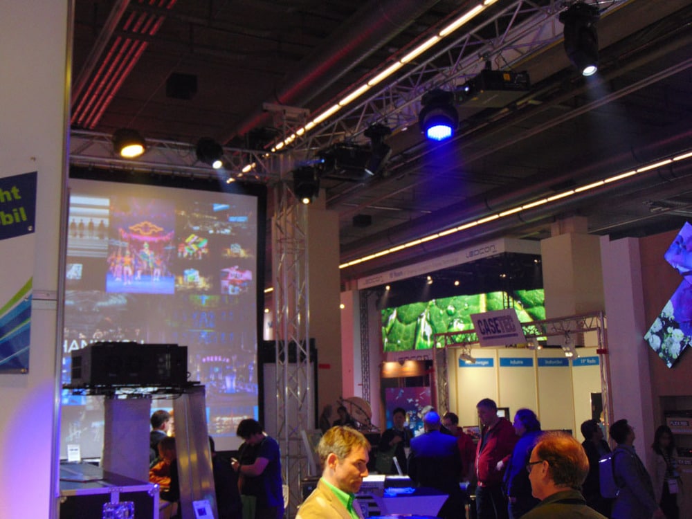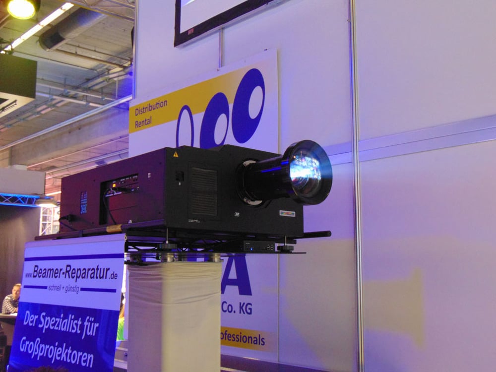 Am eigenen Stand wird der E-Vison Laser 10K (1 Chip DLP) mit einer Kuppelprojektion präsentiert. Der Hersteller verspricht 10500 Lumen mit WUXGA Auflösung, eine Lampenlebensdauer von 20000 Stunden und 5 Jahre Garantie.