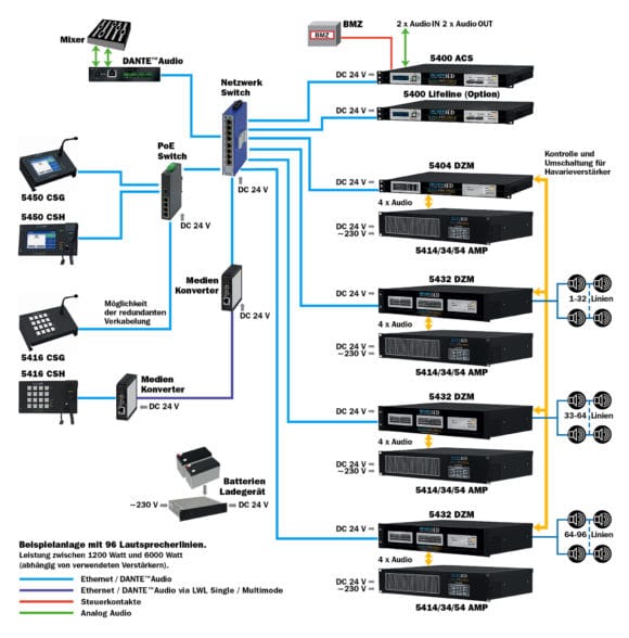 Beispielkonfiguration für eine Sprachalarmanlage mit 94 Lautsprecherlinien (Bild: MediasPro)