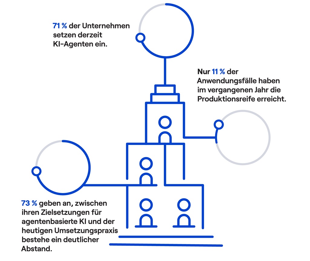 Insgesamt wurden für den Report 1.150 leitende Entscheider und Entscheiderinnen aus Unternehmen mit mehr als 1.000 Mitarbeitenden in Deutschland, USA, UK und Frankreich befragt. Dem Bericht zufolge experimentieren zwar viele Firmen mit KI-Agenten oder planen deren Einsatz, doch fehlendes Vertrauen bleibt ein wesentliches Hindernis für eine breitere Einführung: