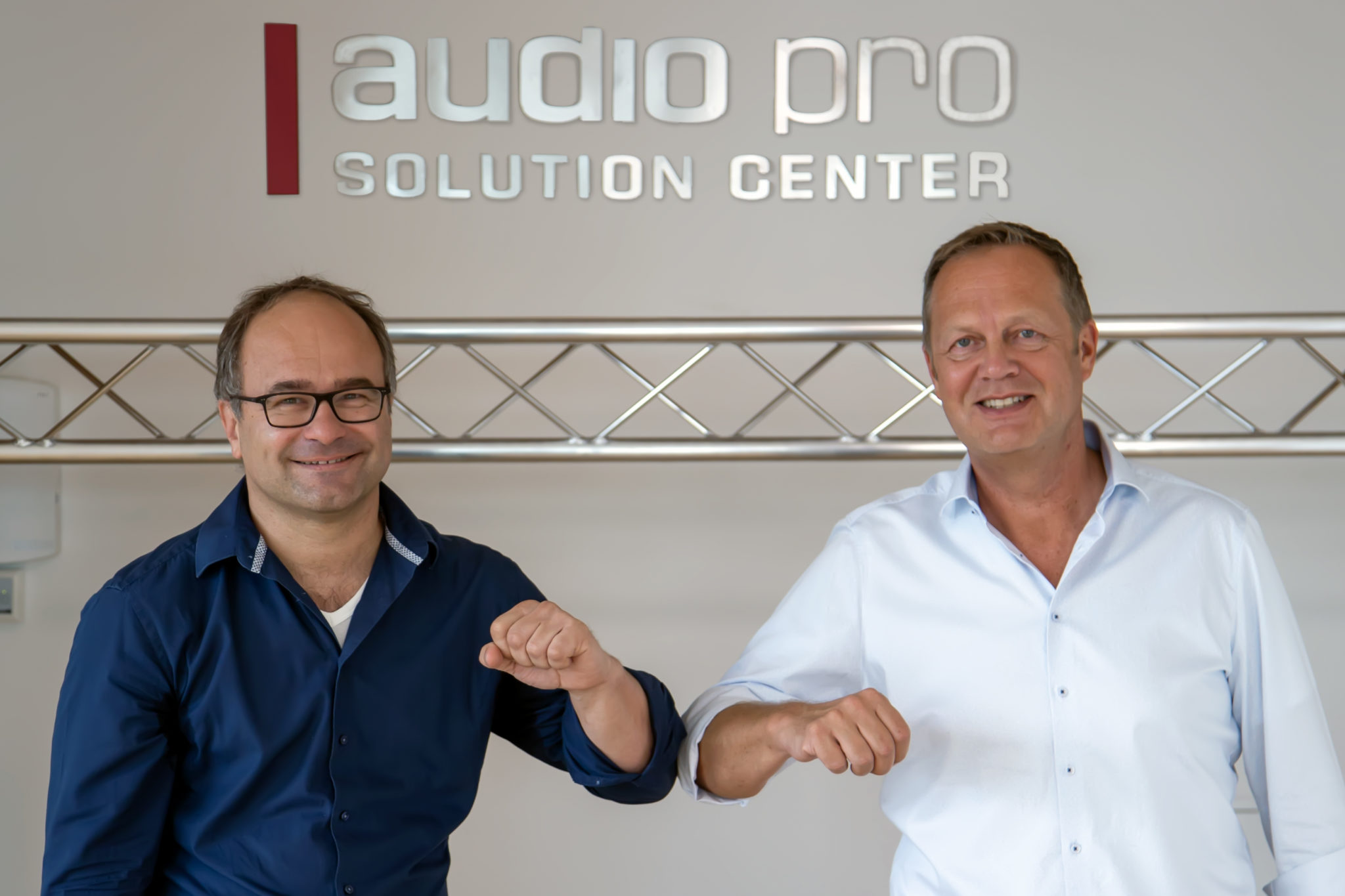 Jochen Wainwright, System Solution Manager DACH bei Audinate (links) und Christoph Keller, Geschäftsführer der Audio Pro. (Bild: Audio Pro Heilbronn)