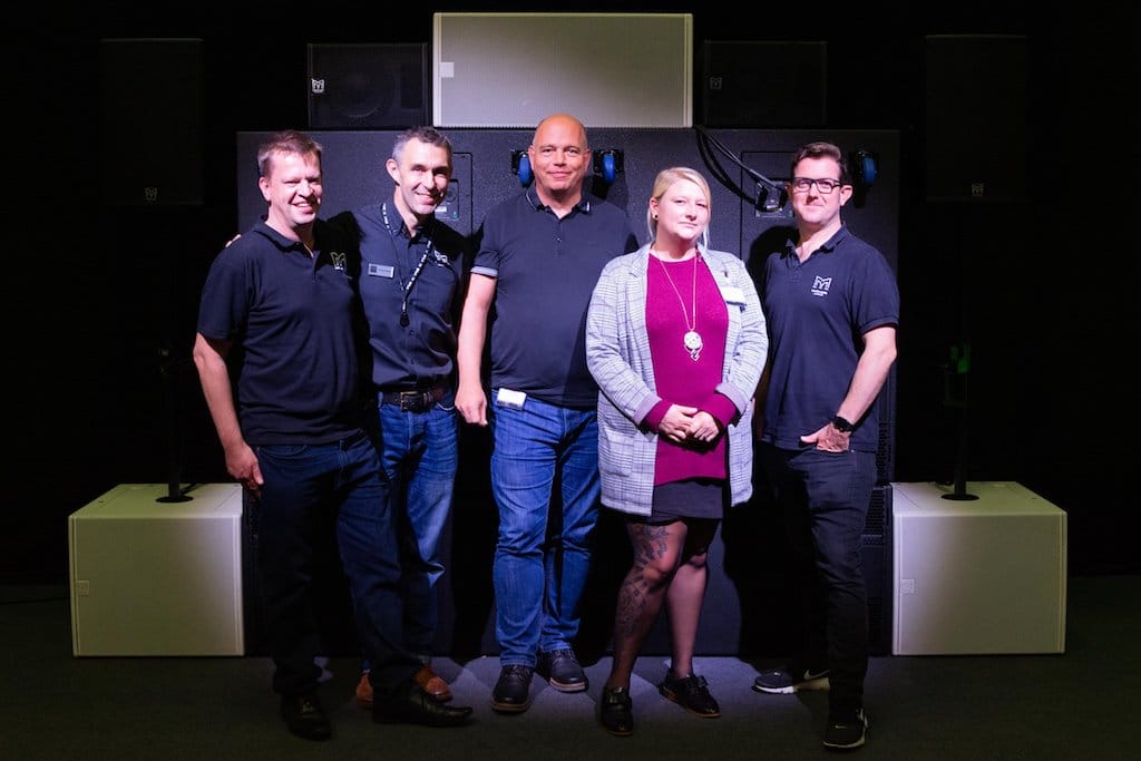 v.l.n.r.: James King (Director of Marketing Martin Audio), Bradley Watson (EMEA Sales Manager Martin Audio), Thomas Mikus (Sales & Marketing Director Professional Market Audio-Technica), Alexandra Bischof (Marketing Manager Distributed Brands bei Audio-Technica) und Dom Harter (Managing Director Martin Audio)(Bild: Martin Audio)