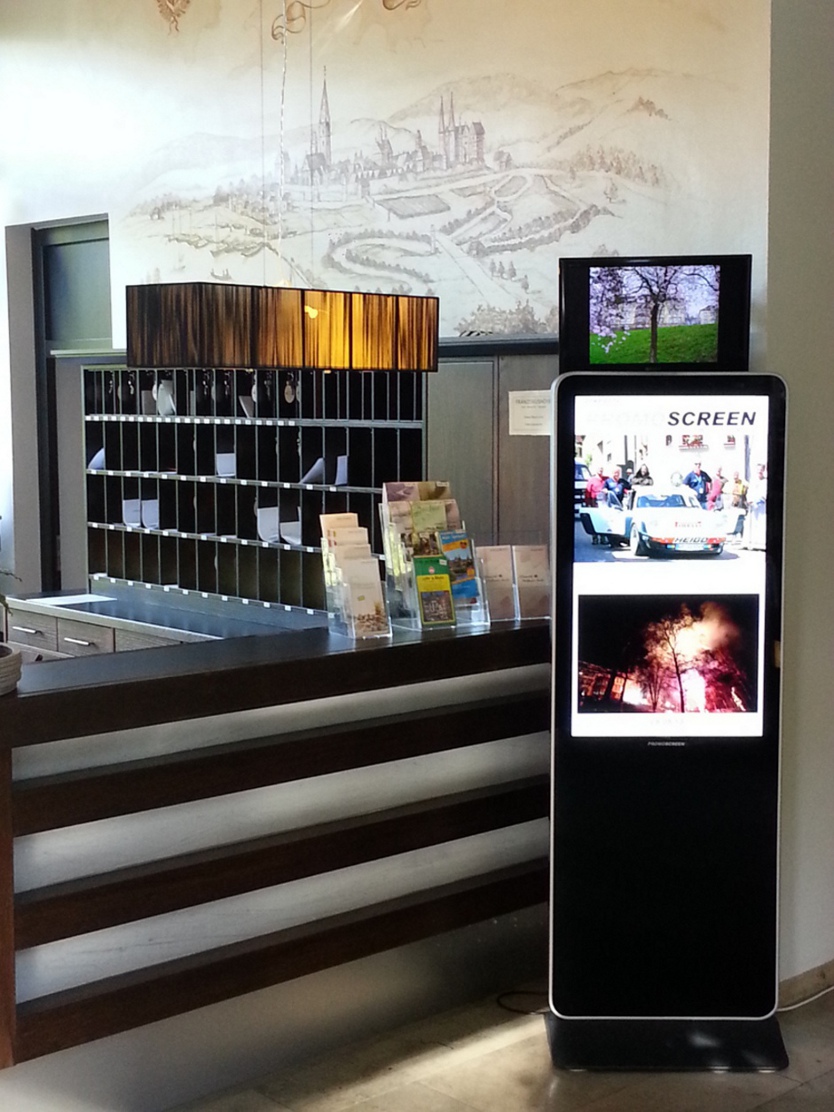 Promoscreen Kiosksystem im Hotelfoyer(Bild: ETHA international)
