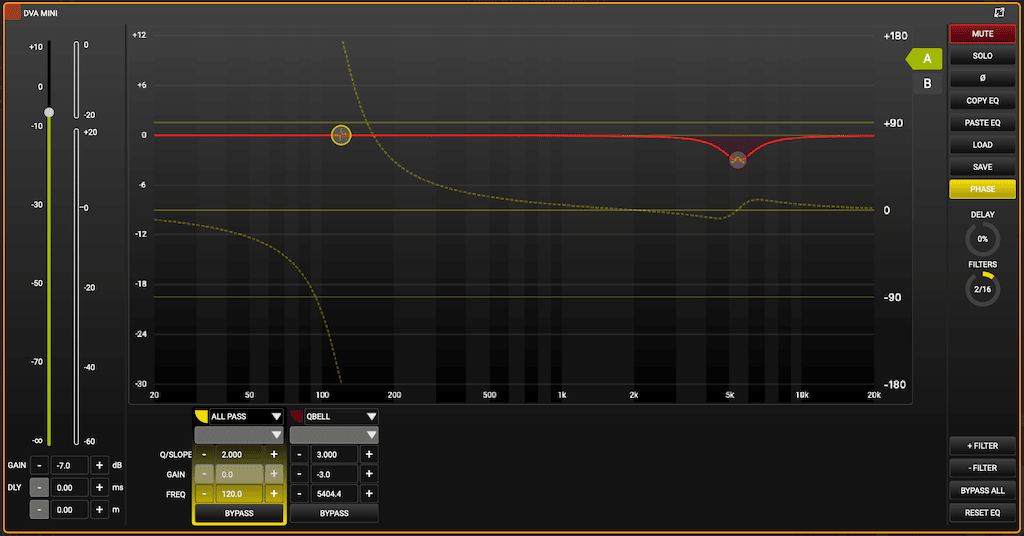 Screenshot der AuroraNet 2.0 Software: Elektrische Phase und Allpass Filter. (Bild: dBTechnologies)