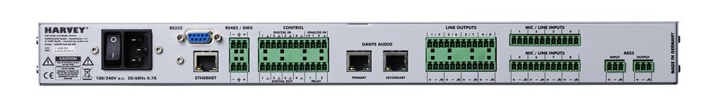 Neben der exzellenten Audioqualität stellt DSPECIALISTS die einfache und flexible Verschaltung der Audio-Kommunikationskanäle untereinander als ein entscheidendes Merkmal heraus. Mit der Geräteversion Harvey Pro 8×8-DA-AES8, dem Flaggschiff der Harvey-Serie, lassen sich demnach bis zu 80×80 Audiokanäle in höchster Qualität über Dante, AES oder analog miteinander verknüpfen.