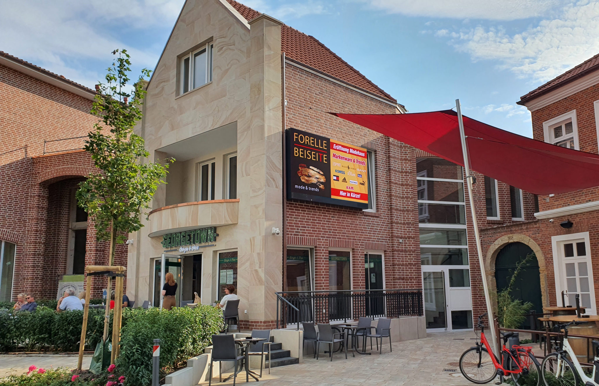 Innovativ….Event….Lifestyle…. das sind die Stichpunkte bei denen Ledcon ins Spiel kommt. Für einen Teilbereich des großangelegten Gastro-Außenbereich wurde für den Inhaber Georg Dobelmann (der Herr über fast 100 „Postenbörse“ Ladengeschäften) eine LED Wand realisiert, die den Besuchern neben guten Tipps für die nächsten Events von jetzt an auch Bundesliga, Champions League, Formel 1 etc als Unterhaltung bei einem selbstgezapften Bier bietet.