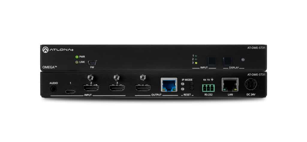 Atlona’s OME-ST31 ist ein zwei HDMI- und ein USB-C-Eingangs 4K Video-Switcher mit gespiegeltem HDMI- und HDBaseT-Ausgang. Foto: Atlona (Bild: Atlona)