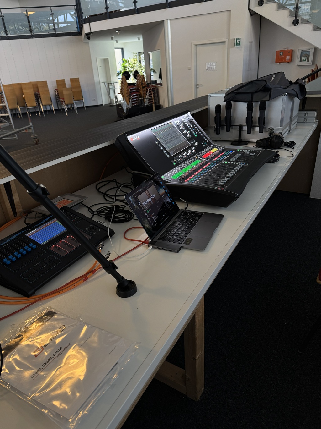Die Beschallungsanlage wird von einem Allen & Heath dLive C2500 Mischpult und dem CDM48 MixRack bespielt. „Ich mische selbst auf dem C2500 und bin ein großer Fan davon“, schwärmt Schmid. „Die Konsole ist einfach zu bedienen, bietet große Funktionsvielfalt und läuft zuverlässig.“