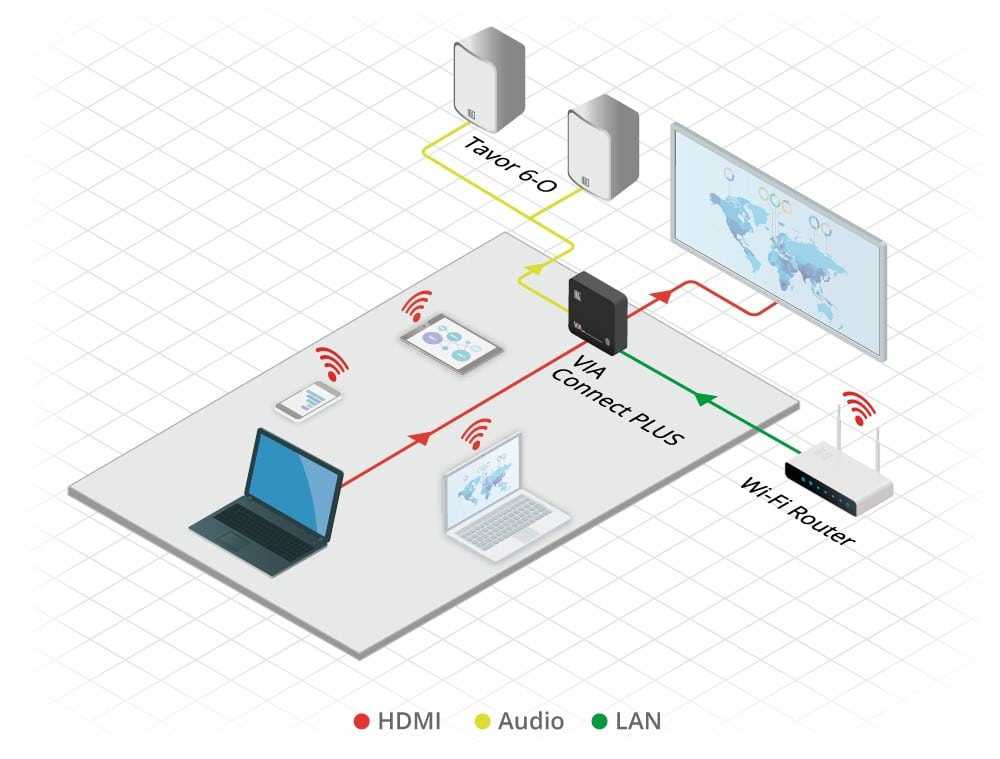 Mit der Lösung sollen Teilnehmer von Konferenzen oder Meetings mit jedem Laptop oder mobilen Endgerät Full HD-Videos streamen (bis zu 1080p60), Bilder und Dokumente ihres Geräts auf dem Hauptbildschirm anzeigen sowie Dateien jeder Größe teilen können. Die Whiteboard-Funktion erlaubt das Hinzufügen von Anmerkungen und Skizzieren von Ideen. Das Präsentationssystem VIA Connect Plus kann theoretisch bis zu 254 Endgeräte über das Netzwerk einbinden und bis zu vier Nutzerinhalte auf dem Hauptbildschirm darstellen – und umgekehrt die Inhalte des Displays auf dem Teilnehmergerät anzeigen.