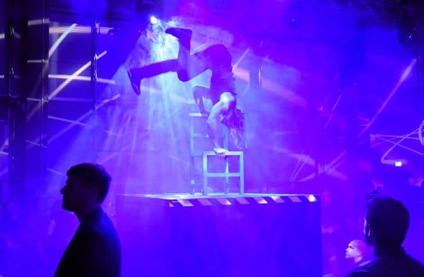 Einen Raum weiter passierten die Besucher eine Videoinstallation aus alten Röhrenfernsehren, die die geschichtlichen Highlights der 1980er Jahre zeigte. So gelangten sie ins Hochregallager und damit in die Neuzeit der Veranstaltungstechnik. Dort informierte eine raumbreite Leinwand über den Ablauf des Abends und zeigte die Höhepunkte der fast 30-jährigen Firmengeschichte der Lux AV. Natürlich konnten sich die Gäste auch über die modernste Technik von Rednerpulten – der Lux AV MediaPulte – informieren und diese gleich vor Ort testen. Im dritten Bereich der Location fand die Abendunterhaltung statt. Den Auftakt machte Herr Reinhard Naumann, Bezirksbürgermeister von Charlottenburg Wilmersdorf, mit einem Grußwort. Danach berichtete Dr. Bernd Schmidt, Gründer der Lux AV, über deren Firmengeschichte, den Bau der neuen Niederlassung und die zukünftigen Projekte in der Hauptstadt. Wie es sich gehört, übergab der Bürgermeister einen Schlüssel zur Einweihung. Der Schlüssel wurde jedoch nicht einfach überreicht, sondern erschien durch den Ballwurf des Bürgermeisters als Projektion an der Wand.