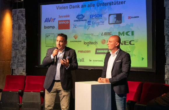 Björn Jensen, CEO der macom GmbH (r.), und Oliver Mack, Geschäftsführer der macom GmbH (l.) bei ihrer Eröffnungsrede des am 30.09.19 im Hamburger FTZ.(Bild: macom)