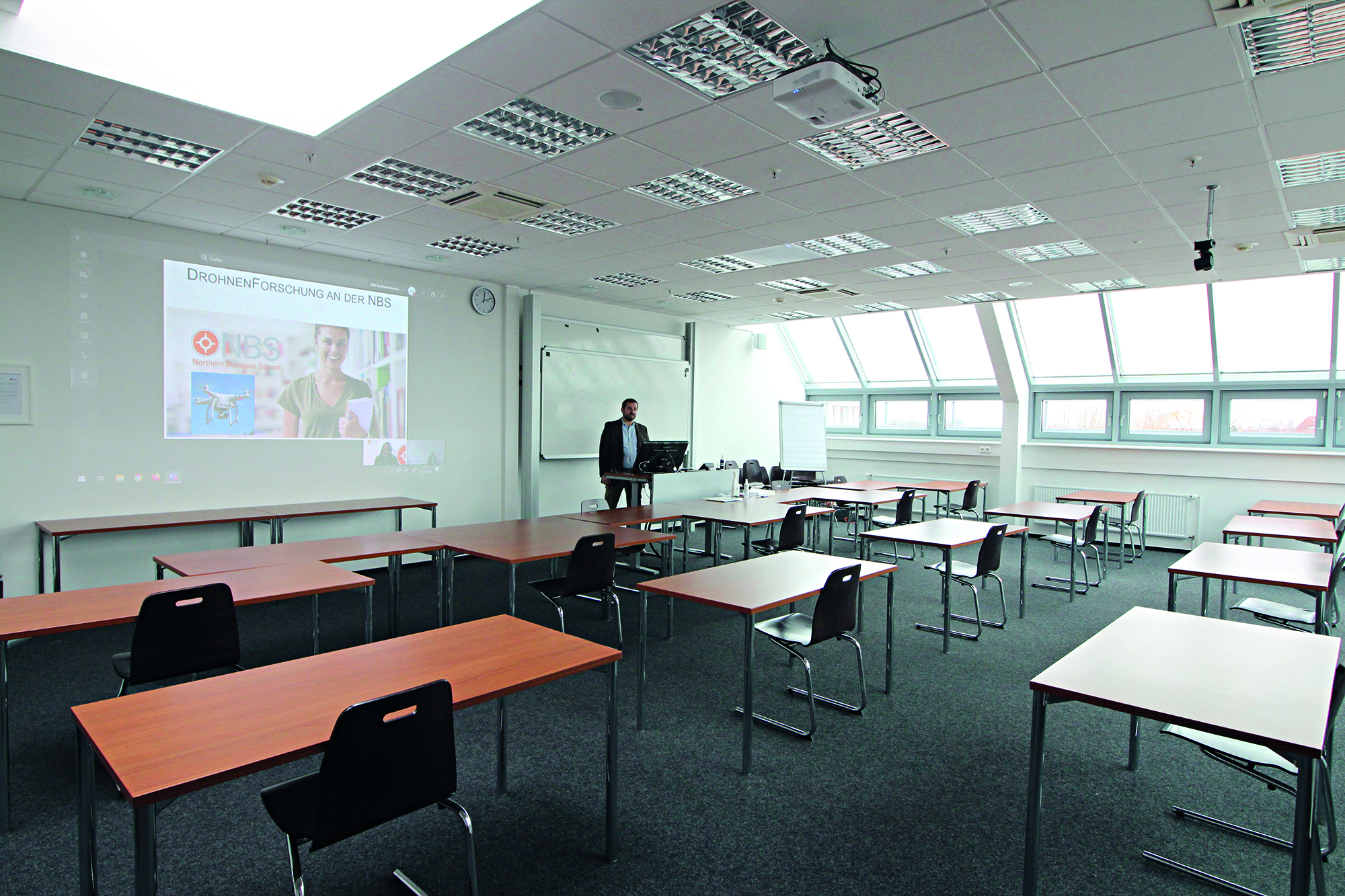 Die Northern Business School in Hamburg reagierte bei Ausbruch der Corona-Pandemie im Jahr 2020 als eine der ersten Hochschulen und beauftragte Mediasystem mit der Planung und technischen Umsetzung eines umfassenden Konzepts für den hybriden Unterricht. Damit können Vorlesungen ortsunabhängig dank hochwertiger Ausstattung stattfinden, ohne das Unterrichtsgeschehen zu beeinträchtigen.