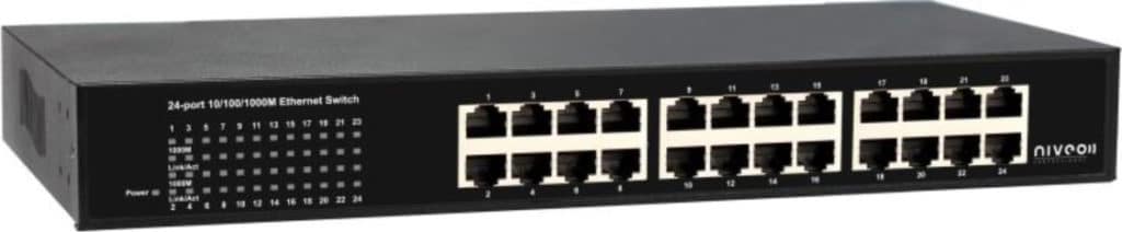 Der Niveo NGS24TP beispielsweise ist ein 24-Port Gigabit-Ethernet-Switch mit 10/100/1.000M – wahlweise mit Anschlüssen auf der Front- oder Rückseite. Er ist vergleichsweise kompakt und ideal auch für den Desktop-Einsatz mit begrenztem Platz geeignet. Ein zum Lieferumfang gehörendes Rack-Montage-Kits ermöglicht dabei z. B. die Montage unter einem Schreibtisch.