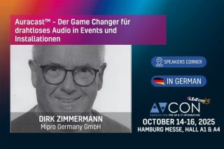 Dirk Zimmermann, Business-Developement Manager bei der Mipro Germany GmbH, erklärt am 14 Oktober auf der AVcon in Hamburg in einem Impulsvortrag, warum die Bluetooth-Technologie Auracast vor dem Durchbruch steht. Auf der Speakers Corner wird er …