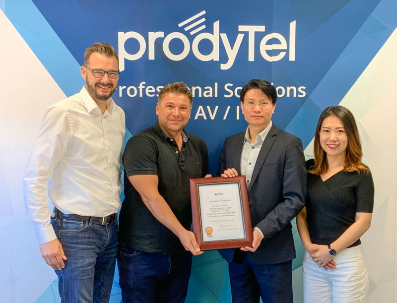 Jason Yang, Aoto EMEA Sales-Direktor und Angela Lee, Overseas Sales Manager EMEA bei der Übergabe der Partner-Urkunde(Bild: prodytel)