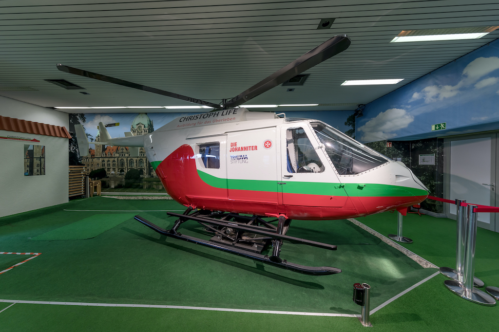 Volker Hubrich hat maßgeblich dazu beigetragen, dass die in der SAN-Arena verfügbaren Trainingsmöglichkeiten durch einen ausgemusterten Rettungshubschrauber erweitert werden konnten – genauer gesagt durch die Zelle eines zweimotorigen Airbushelikopter BK 117, der vormals auf einer kanarischen Insel zum Einsatz kam. Das restaurierte, mit moderner Medizintechnik ausgestattete Fluggerät ist motorisch bewegbar, was bei Übungen in Kombination mit eingespielten Geräuschen und Lichteffekten zu einem realistischen Einsatzgefühl beiträgt.