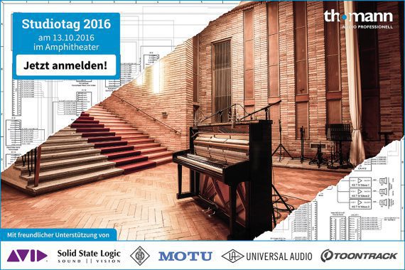Thomann Audio Professionell lädt zum Studiotag 2016 am 13.10.2016 ins Amphitheater nach Treppendorf ein. Bei dem praxisorientierten Studiotag erwarten die Besucher aktuelle Fachvorträge und eine Fachausstellung namhafter Hersteller mit ausreichend Raum und Zeit für individuelle Fragen und einem aktiven Wissensaustausch.