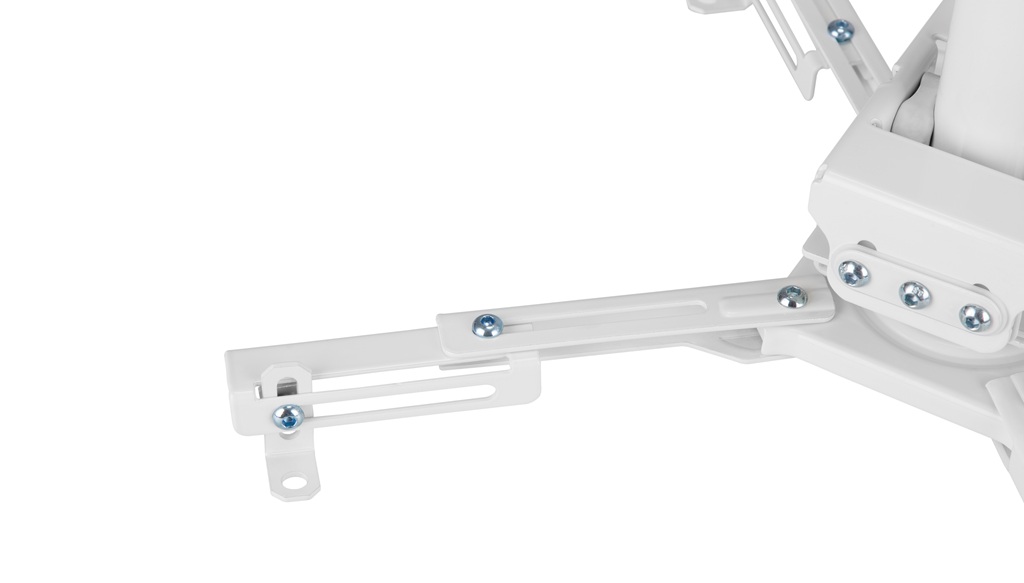 Die variabel einstellbare Länge zwischen 74,5 und 114,5 Zentimetern ermögliche eine präzise Positionierung der Bildfläche – angepasst an Raumhöhe und Projektionsverhältnis. Durch schwenkbare und neigbare Gelenke lasse sich der Projektor stufenlos ausrichten: mit bis zu 20° Neigung, 8° seitlichem Schwenkspielraum und vollständiger 360°-Rotation. Die vier verstellbaren Tragarme sollen sich dabei flexibel den gängigen Beamer-Größen anpassen, während die Feinjustierung an der Deckenplatte für exakte Ausrichtung sorge – unabhängig von der baulichen Gegebenheit.