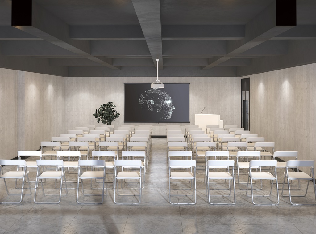 Die Halterung trage mühelos Projektoren und Beamer mit einem Gewicht von bis zu 35 Kilogramm. Ihre weiße Oberfläche füge sich unaufdringlich in jede Raumarchitektur ein, während die intelligente Konstruktion auch anspruchsvolle Montagesituationen – etwa an schrägen Decken – sicher meistere.