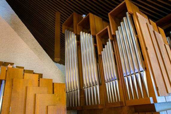 Orgel der Herz-Jesu-Kirche in Brig (CH) mit optisch integrierten Meyer Sound CAL Lautsprechern