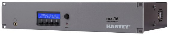 Harvey mx.16 ist mit 16 analogen Audio-Ein- und Ausgängen sowie zahlreichen Steuerschnittstellen ausgestattet und für den Einsatz in Konferenzräumen, Theatern, Heimkinos, Museen und vielen anderen Installationen geeignet.