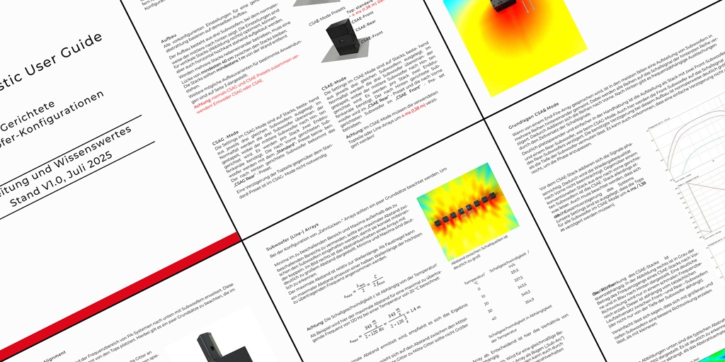 Das „Handbuch für gerichtete Subwoofer-Konfigurationen“ vermittelt Grundlagen zu Bass-Arrays, erklärt die physikalischen Hintergründe und geht detailliert auf die Unterschiede zwischen den CSAG-Settings (Gradient) und CSAE-Settings (Endfire) von Voice-Acoustic ein. Neben Theorie enthält es Tipps zur optimalen Platzierung von Subwoofern in unterschiedlichen Anwendungsszenarien.