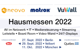 AG Neovo, Matrox und VuWall veranstalten am 27. September 2022 in Berlin eine Hausmesse für AV- und Kontrollraum-Planer:innen, Projektverantwortliche, Systemintegrator:innen, Händler:innen sowie AV-Installateur:innen.