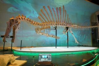 Der szenische Hintergrund eines Spinosaurus-Skeletts wird im Rahmen der 25-Jahrfeier der Special Administrative Region im Hongkong Science Museum mit Pixera two QUAD Medienservern und Projektionen zum Leben erweckt.