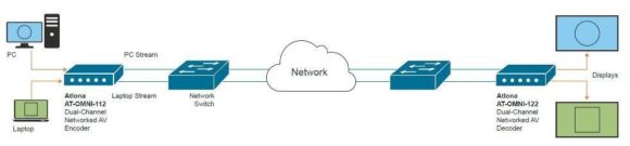 Atlona nutzt für die Komprimierung der Signale in der AV-Distribution über IP-Netzwerke den SMTP VC-2-Codec und geht auch hier einen anderen Weg als viele Mitbewerber, die auf JPEG2000 oder H.264 setzen. Hierbei nutzen Anbieter die Kompressionsstärke des H.264-Codecs vor allem, um möglichst viele AV-Datenströme innerhalb eines Gigabit-Netzwerks realisieren zu können. Da eine hohe Kompression mit hohen Latenzen einhergeht, sind diese Anwendungen hauptsächlich in Bereichen anzutreffen, bei denen Latenzen eine untergeordnete Rolle spielen. Andersherum kann der JPEG2000-Codec aufgrund seiner geringeren Kompression und damit geringen Latenzen überall dort eingesetzt werden, wo eine höhere Qualität des Video-Signals und niedrige Latenzen gefordert werden. Der von Atlona verwendete VC-2-Codec wurde von der BBC für kritische, qualitative Broadcast-Anwendungen entwickelt und ist ideal für Bewegtbilder und Grafikanwendungen mit 4:4:4 Farbumfang.