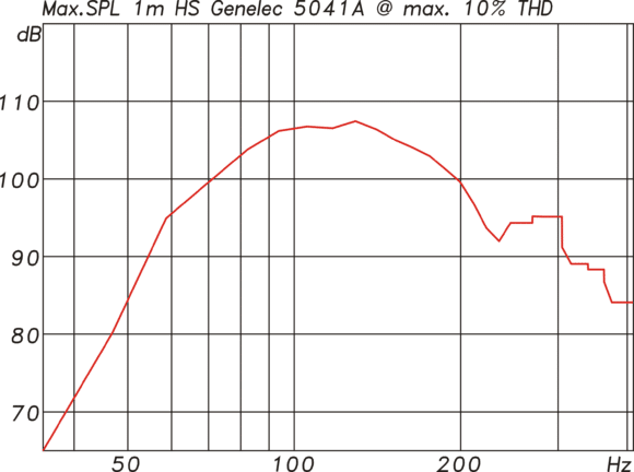 Abb. 12: Maximalpegel der 5041A gemessen mit 185 ms langen Sinusburst für maximal 10% Verzerrungen.
