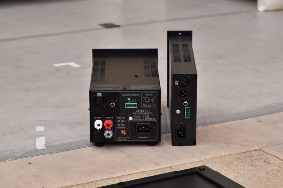 Genelec AIW26B (rechts) mit Subwoofer 5041A