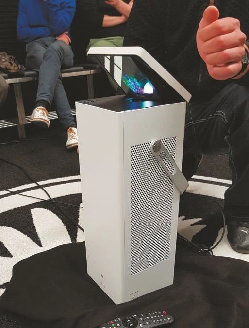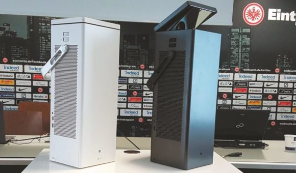 Am 17.04.2018 hat LG Electronics im Pressezentrum der Eintracht in der Commerzbank- Arena den neuen portablen Projektor Presto vorgestellt. Presto ist ein standalone 4K-Laser-Beamer mit integriertem, aufrollbarem Netzkabel und der erste vertikal stehende Beamer mit variablem Spiegel – und der erste Projektor mit integrierter 4K-Streaming-Möglichkeit.