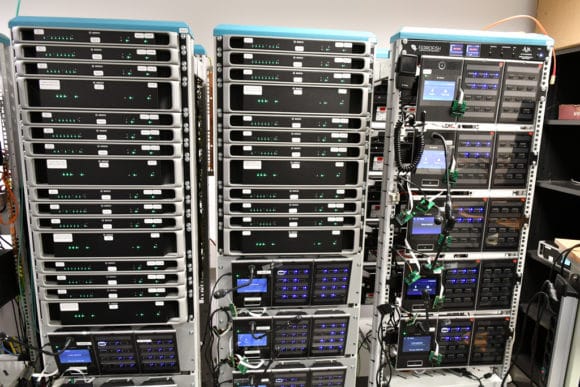Das typische Bild einer Zentrale für eine Sprachalarmanlage wird von den Verstärkern dominiert, die nicht nur optisch, sondern meist auch beim Stromverbrauch und der Abwärme aus dem System eine dominante Rolle spielen. Hinzu kommen dann noch mögliche Relaisbänke, die im Falle eines Defektes eines Verstärkers auf einen Havarieverstärker umschalten.