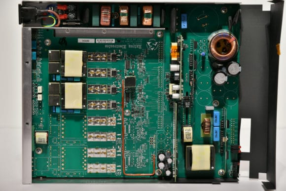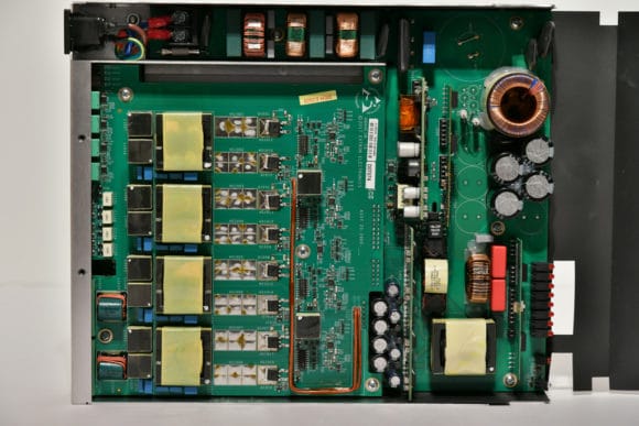 BILD 02: Innenansicht des achtkanaligen Modells XPA U 358: Kabel gibt es in den Ultra-Verstärkern keine, womit dann auch durch die Verkabelung bedingte Fehler nicht vorkommen können. (Bild: Anselm Goertz)