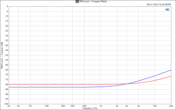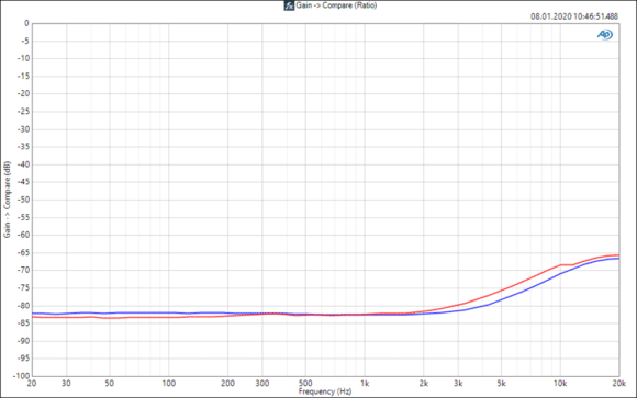 ABB. 04: Übersprechdämpfung von Kanal 1 auf 2 (bl) und von Kanal 2 auf 1 (rt) (Bild: Anselm Goertz)