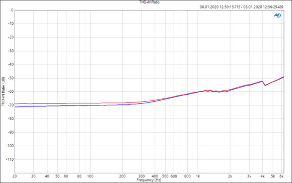 Im relevanten Bereich liegen die Werte zwischen –50 und –60 dB. Diese Größenordnung ist vergleichbar mit den Werten vieler anderer Class-D-Verstärker.