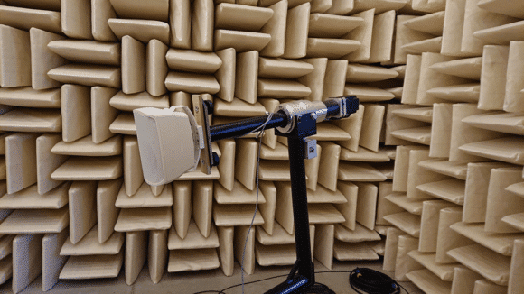 Die WALL-05DT an der ELF Maschine im reflexionsarmen Raum für die Messung der Isobaren. Wie man nur unschwer erkennt, ist die Maschine mit der WALL-05DT noch nicht ausgelastet. (Bild: Anselm Goertz)