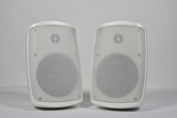 Das Pärchen Monacor WALL-05DT in soliden Kunststoffgehäusen; die Bestückung besteht aus einem 5″-Tieftöner und einem 1/2″-Hochtöner. (Bild: Dieter Stork)